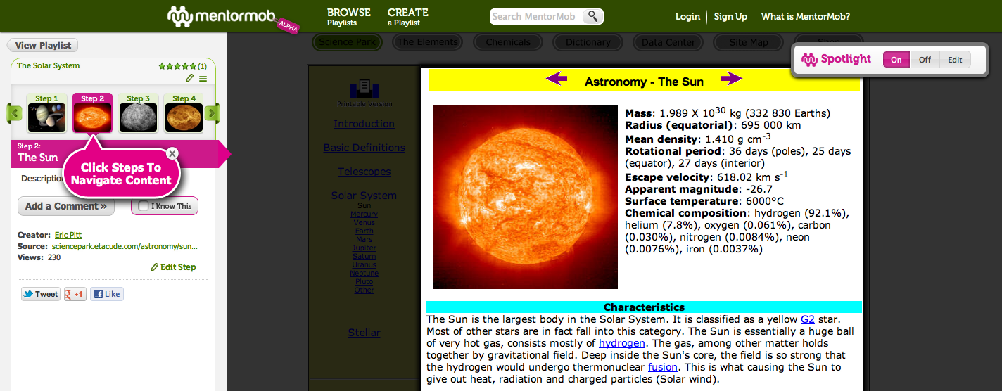 MentorMob ist eine Art Lernoberfläche für das Internet. Es erlaubt Lernenden und Lehrenden, Webseiten zu einem Lernumfeld zusammenzustellen. Was heißt das?