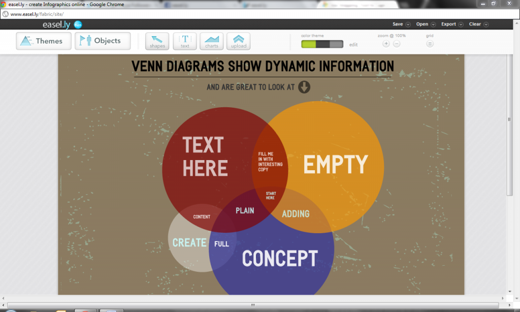 Im letzten Post habe ich festgehalten, dass zum Umgang mit Social Media immer auch das Herstellen von Inhalten gehört. Easel.ly ist ein dafür geeignetes Tool: Es erlaubt das umstandslose Herstellen von Infografiken. Das Tool läuft im Browser, es muss also keine Software installiert werden. Es enthält sehr viele schöne Vorlagen, in die man die eigenen Daten oder Angaben einfüllen kann. Die Resultate lassen sich in allen gängigen Bildformaten speichern und verbreiten.