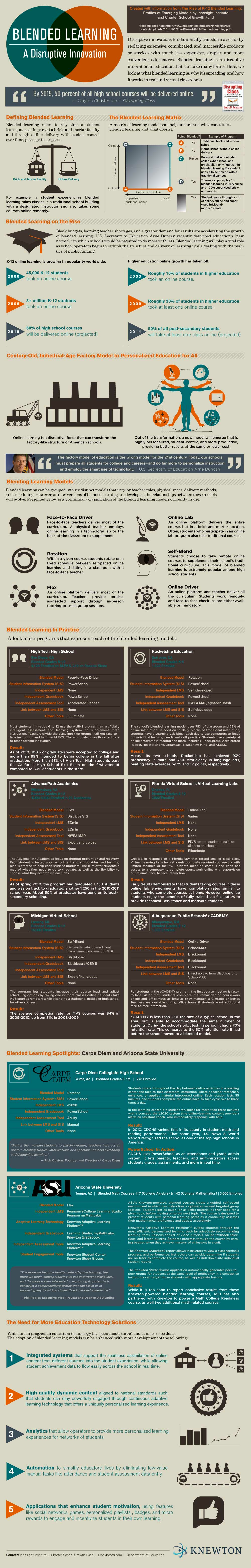 Eine Infografik von Knewton (von der auch oben stehende Matrix stammt) hält wesentliche Aspekte von Blended Learning fest, die ich kurz kommentieren und abschließend mit einem Verweis zu Social Media versehen werde.