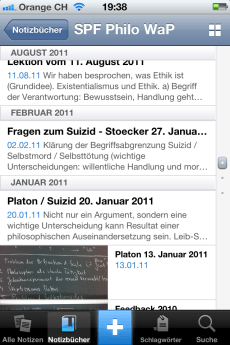 In der App (Evernote gibt es sowohl für iPhones/iPads als auch für Android) kann ich dann das Notizbuch auswählen und mit dem +-Knopf ein Bild erstellen, das dann automatisch in diesem Notizbuch gespeichert wird. Evernote bietet mir die Möglichkeit, einen Titel zu setzen und Notizen einzutragen, die ich später auch online oder in der Computer-App ändern kann.