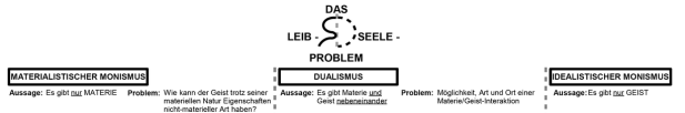 Der Begriff Dualismus taucht in der Diskussion des Körper-Geist-Problems regelmäßig auf: Die naive, intuitive Position besagt, dass Menschen einen Körper und einen Geist haben, die nebeneinander existieren. Die Frage, wie man sich eine Interaktion zwischen materiellem Körper und nicht-materiellem Geist vorstellen müsse, stiftet dabei große Verwirrung. Die Verwirrung könnte gelöst werden, indem man eine so genannt monistische Position einnimmt: Es gibt nur den Körper, der in der Lage ist, so etwas wie geistige Phänomene hervorzubringen. Oder es gibt nur den Geist, der uns die Illusion gibt, einen Körper zu haben und in einer physisch manifestierten Realität zu leben.
