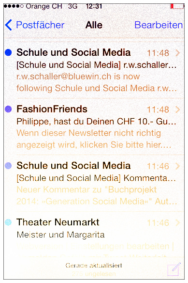 - Ich nutze eine mobile Ansicht, die mir Absender, Datum, Betreff sowie die ersten rund 15 Wörter anzeigt. Das ist meine Entscheidungsgrundlage.