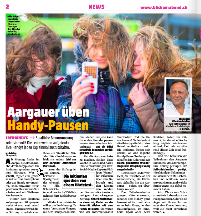 Morgen beginnt die Aktionswoche »freihändyg«, mit der dazu aufgerufen wird, bewusst digitale Pausen einzulegen. Ich habe bereits hier über meine Haltung dazu berichtet und die Folien publiziert, die ich an zwei Infoabenden verwendet habe. Das mediale Echo auf die Aktion übertrifft die Erwartungen: Einen Artikel der AZ nahm der Blick am Abend auf – und zwar auf der Titelseite.