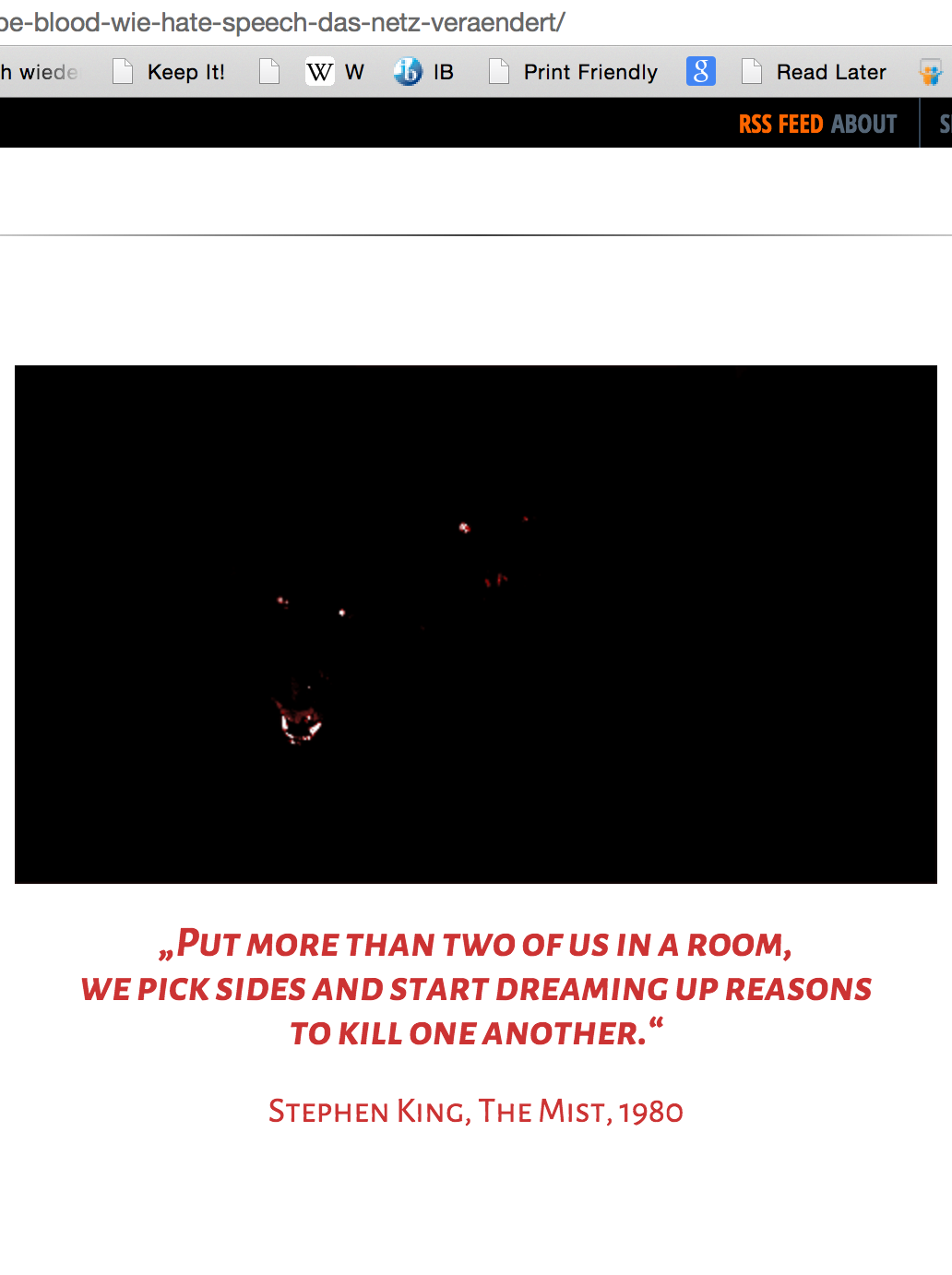 Ich sehe immer mehr Artikel zu Wut und Trollen, Online-Harassment und virtueller Gewalt an jeder Ecke. Wir reden immer lauter über Emotionen im Netz, wie sie darin geformt und übersteuert werden, über Empathie und wie sie in einer digitalen Welt funktionieren kann. Die Diskussion ist längst in Deutschland angekommen, spätestens mit dem Drama um die provokativen Texten von Frau Von Rönne in der Welt oder der Diskussion um das Münkler Watchblog. Websites und Mainstream-Medien leiden schon lange unter dem immer emotionalerem und ausfallenderem Diskussionsverhalten und sogar der neue Pixar-Film handelt von den Gefühlen von Gefühlen. Das Thema ist überall.