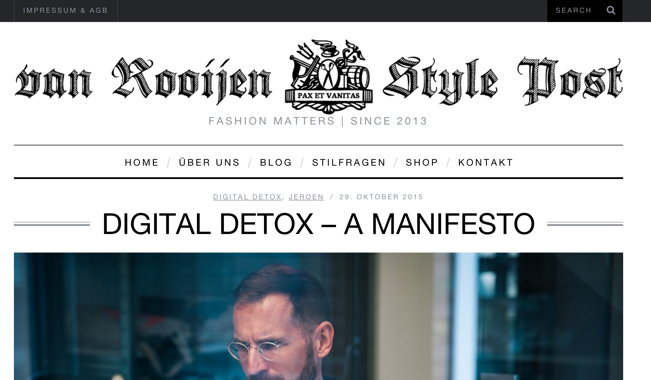 In diese Diskussion passt Van Rooijens Manifest für eine digitale Entgiftung: Digital Detox – A Manifesto. Er leitet es mit dieser Überlegung ein: