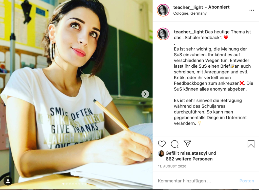 - Auf Instagram gibt es unreflektierte, problematische Profile von Lehrenden. Sie geben vor, helfen zu wollen und über didaktische oder pädagogische Fragen nachzudenken, nutzen das aber primär zur Selbstinszenierung. Diese Konten meine ich explizit nicht mit diesem Beitrag.