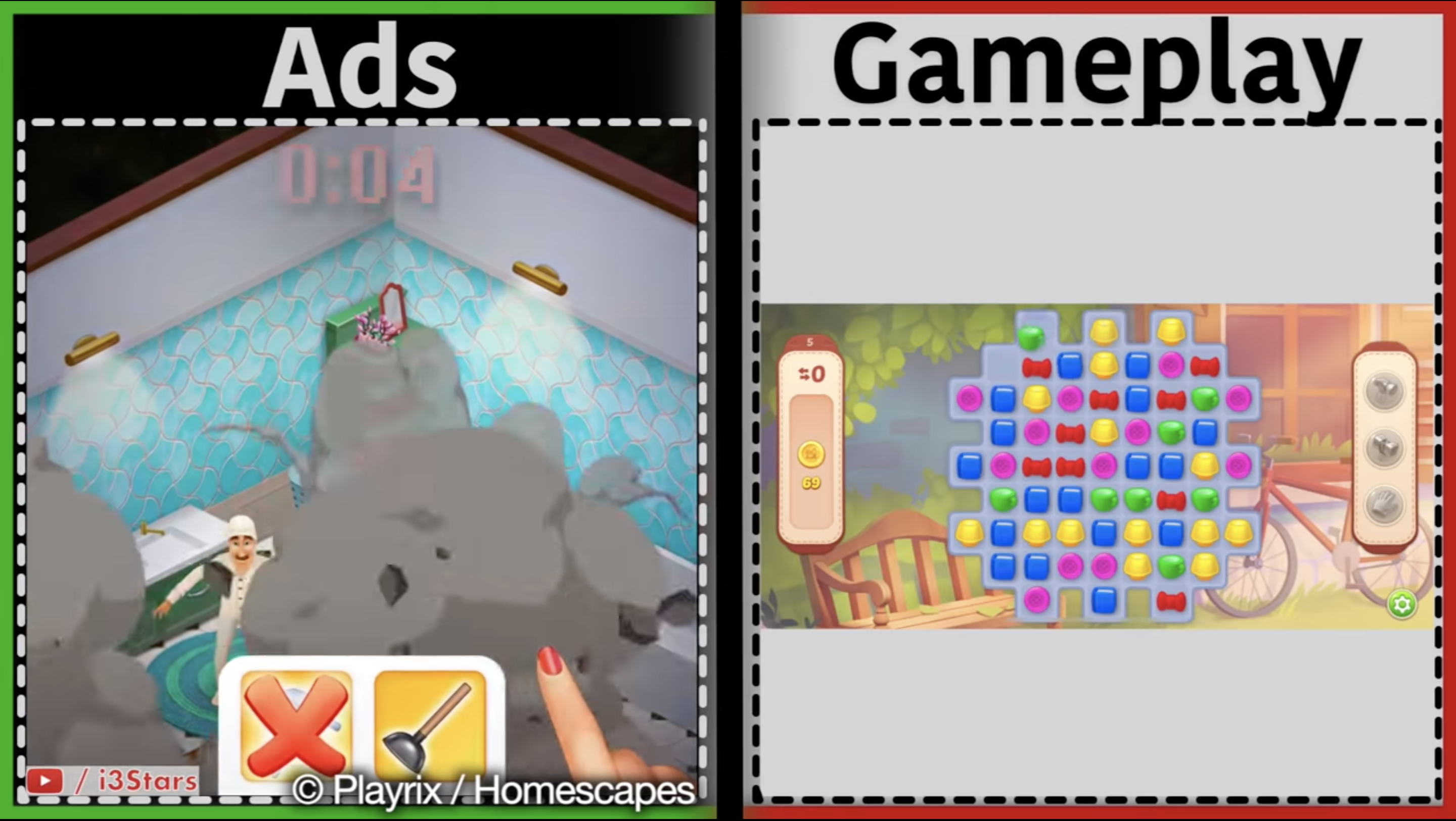 Kennt ihr Homescapes? Das Spiel wird auf digitalen Plattformen intensiv beworben. Playrix, das Unternehmen hinter diesem und ähnlichen Spielen, benutzt eine interessante Werbestrategie: Es wirbt mit Spielsequenzen, die im echten Spiel gar nicht vorkommen.