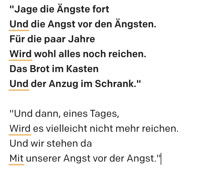 Als zweites Beispiel nehme ich »Rezept«, ein Gedicht von Mascha Kaléko. GPT-3 schreibt die zweite Strophe wie folgt: