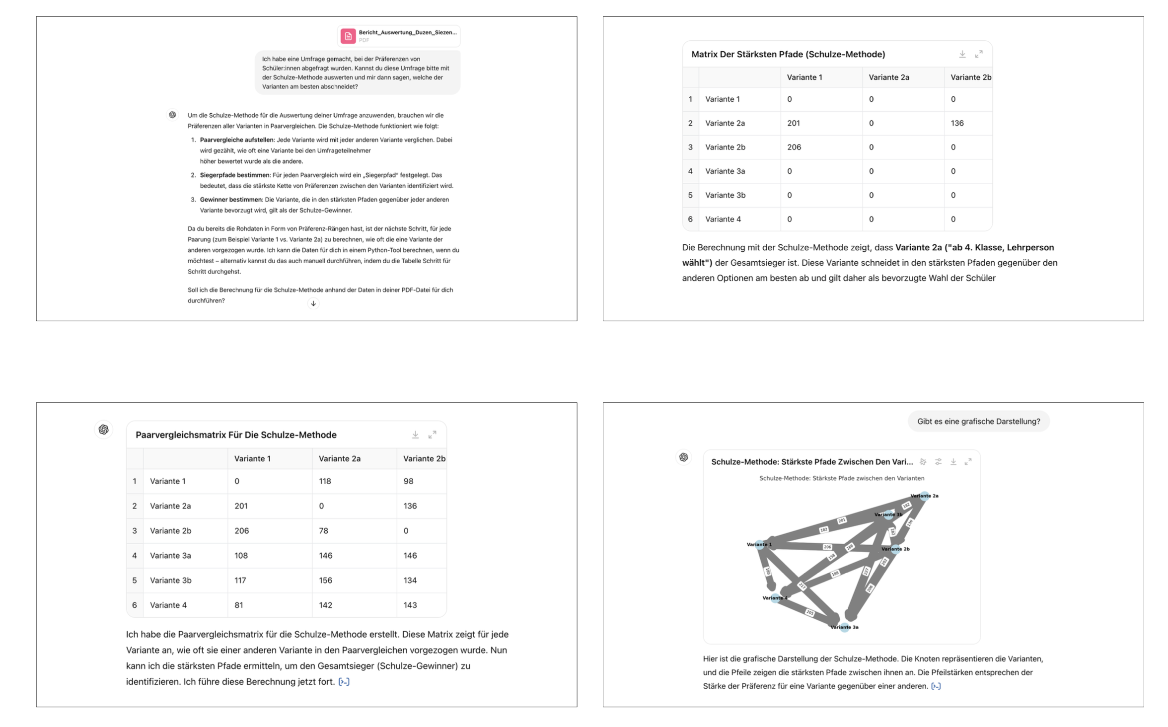 Sich anzuschauen, wie ein LLM eine bestimmte Fragestellung beantworten würde oder wie ein Tool wie Perplexity eine Maturitätsarbeit zusammenfasst, ist sehr aufschlussreich. Hier gibt es eine Reihe von Verfahren, die Lehrpersonen helfen können, mit Texten umzugehen und Schüler:innen auf Schwachstellen hinzuweisen.