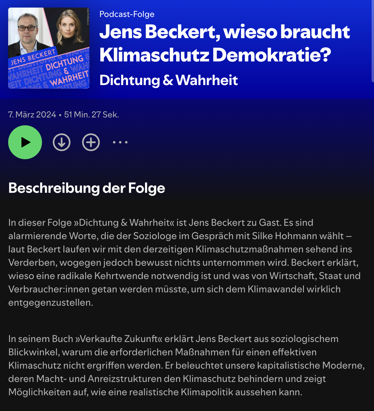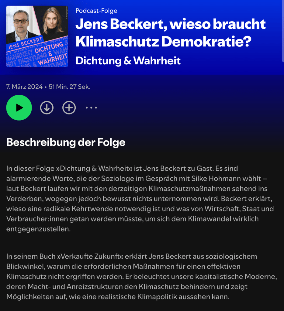 Ein Schüler von mir hat «Verkaufte Zukunft» von Jens Beckert gelesen. Um mich auf ein Gespräch mit ihm vorzubereiten, habe ich zunächst die Podcast-Methode angewandt. Sie geht so:
