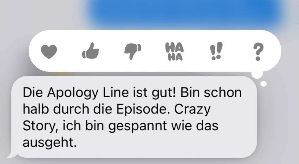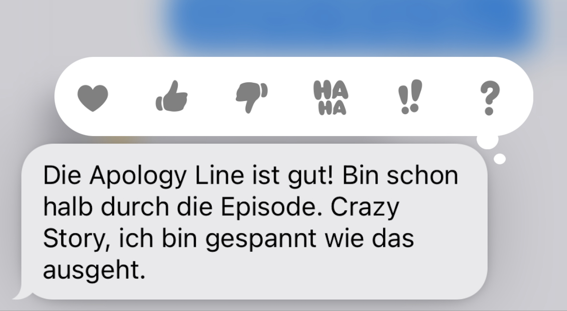 Eine nächste Evolution besteht in der Funktion, auf Chatnachrichten reagieren zu können. Das ermöglicht eine Erweiterung des aktiven Zuhörens in Chats: Für Adressat*innen wird es leichter zu zeigen, dass sie eine Nachricht wahrgenommen haben, gerade auch in sozialen Kontexten, in denen es nicht mehr zu sagen gibt, ein (positives) Signal, dass eine Nachricht angekommen ist, aber sinnvoll ist.