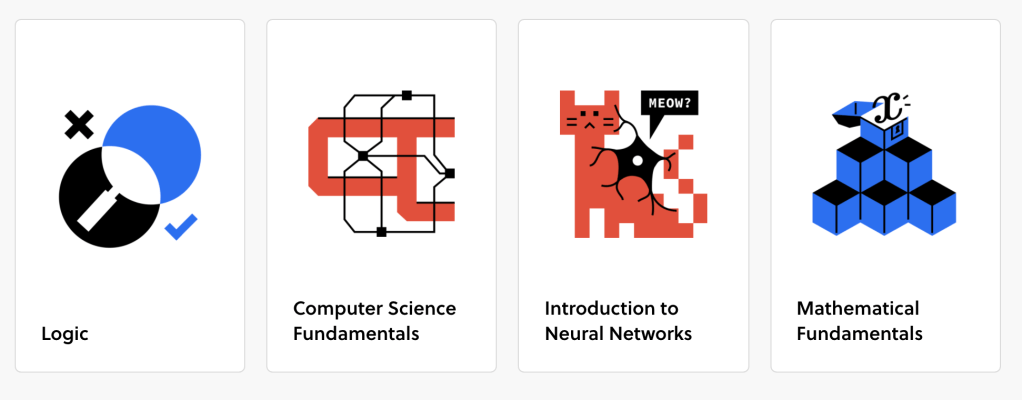Besser kann man angewandte Mathematik und Logik nicht aufbereiten finde ich. Das trifft auch auf die Kurse zu: Die Aufgaben sind manchmal nur ein Check, ob man die wesentlichen Erklärungen verstanden hat; manchmal entwickelt man aber wesentliche Konzepte auch durch einen Trial-und-Error-Zugang zu den Aufgaben.