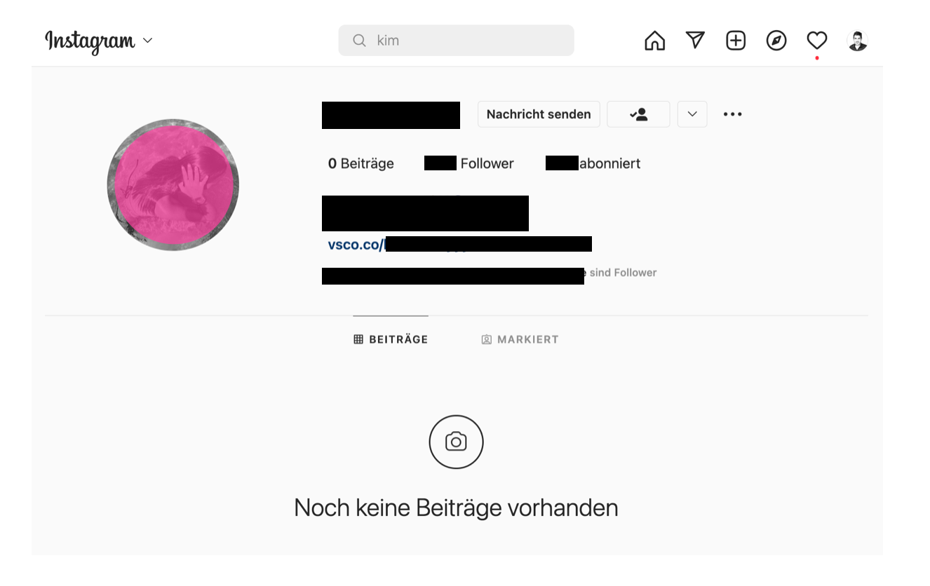 Vom zweiten Vorteil bin ich weiter überzeugt. Am ersten zweifle ich mittlerweile. Das hat einen einfachen Grund: junge Menschen nutzen digitale Plattformen primär für interaktionsorientiertes Schreiben (Storrer). Das unten abgebildete Instagram-Profil ist für Jugendliche in Zürich nicht untypisch: es zeigt keine Beiträge und Stories. Genutzt wird es, um andere Beiträge zu liken und zu chatten – kurz: um Beziehungen zu gestalten.