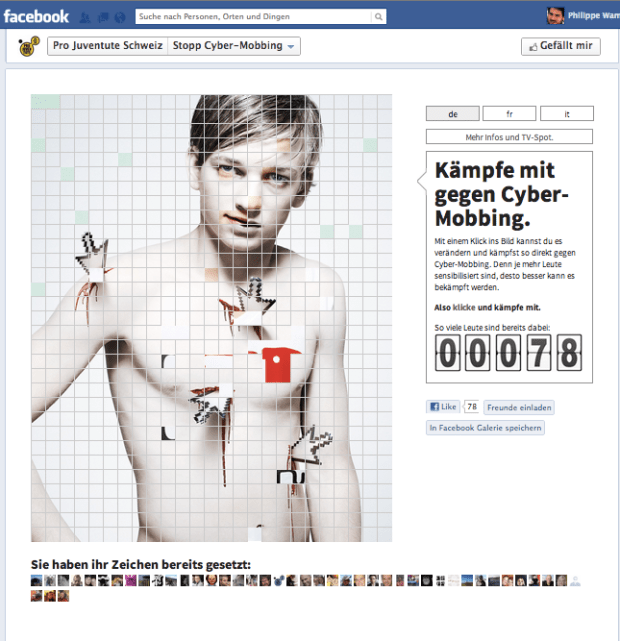 Pro Juventute will mit einer neuen Kampagne zu Cybermobbing Jugendliche und ihr Umfeld für das Thema sensibilisieren, wie die Organisation in einer Medienmitteilung schreibt. Die Kampagne erfolgt multimedial: Neben einem Clip (ganz unten) gibt es Plakate und eine Facebook-App (Klick aufs Bild).