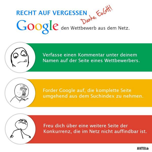 Diese Sicht umgeht die Frage nach den Kriterien für eine Löschung elegant, indem sie vorgibt, Google müsste alle Informationen löschen, wenn Menschen dazu einen Antrag stellen. Die Konsequenzen wären absurd: Bald würden Wikipedia-Einträge, Bücher, Zeitungsseiten nicht mehr gefunden, weil Menschen aus eingebildeten oder realen Nöten eine Löschung im Suchindex beantragt haben. Und warum sollte dieses Recht dann nur Google betreffen und nicht jede Suche im Netz, also beispielsweise auch die auf Newsportalen, in Facebook oder Wikipedia?